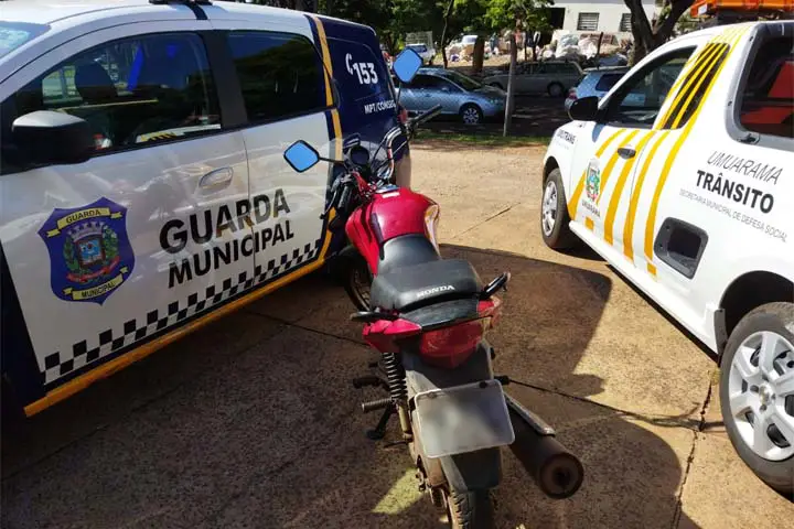 Com o apoio da Guarda Municipal, a motocicleta foi apreendida e encaminhada ao pátio do 25º Batalhão da Polícia Militar.