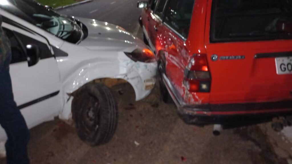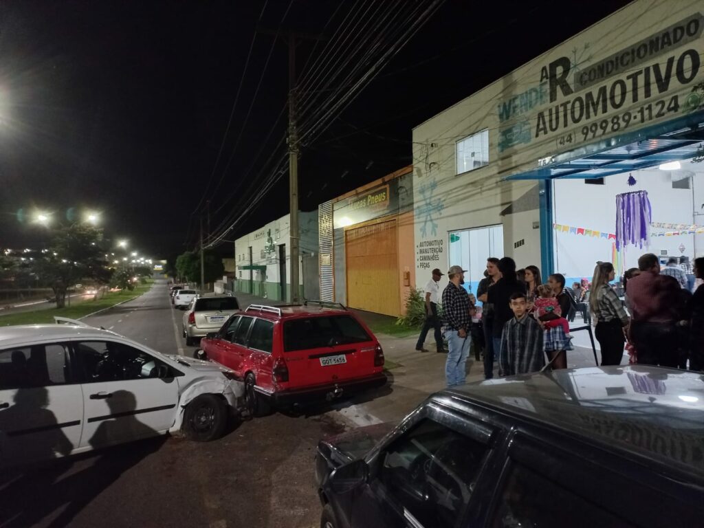 Por pouco uma tragédia não acontece na avenida Parigot de Souza, em Umuarama, na noite desta quinta-feira (16). A motorista de um Ford Fiesta branco bateu em um Uno e depois atingiu um Santana vermelho estacionado em frente a uma empresa de serviço automotivo, onde funcionários e familiares participam de uma confraternização.