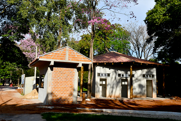 A obra compreende a construção de banheiros em alvenaria com piso e revestimento em porcelanato, janelas de alumínio e laje em concreto, estrutura em madeira de eucalipto tratado e envernizado e cobertura em telha cerâmica portuguesa, além de novas instalações elétricas e sanitárias, plantio de flores e calçadas para passeio em paver.