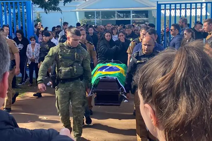 O sepultamento de Fabiano Sobrinho, de 30 anos – policial que morreu na rodovia BR-487, a estrada Boiadeira – foi realizado por volta das 11h desta quarta-feira (13), no Cemitério Municipal de Goioerê. A cerimônia foi marcada por muita emoção, especialmente por parte da família e dos colegas policiais.