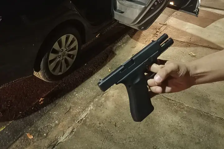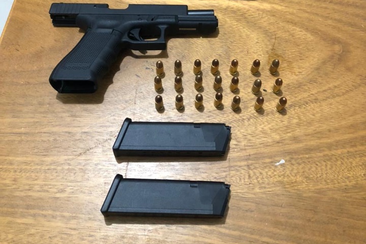 O condutor do veículo, de 42 anos, foi abordado e em sua cintura os policiais encontraram uma pistola semiautomática Glock, calibre 9mm, com dois carregadores e 21 munições intactas.