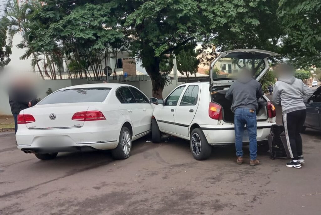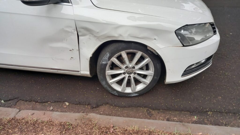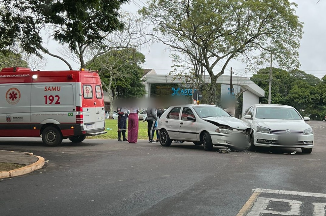 Uma colisão entre dois carros foi registrada por volta das 16h desta terça-feira (9) no cruzamento da Praça Oscar Thompson Filho com a rua Generino Delfino Coelho, perto do Hospital Cemil.
