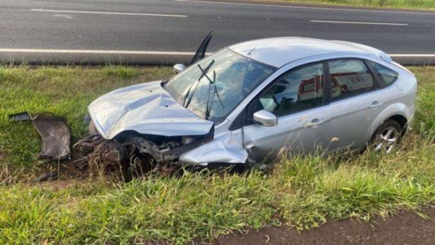 Carro cai no canteiro central da rodovia BR-376 após atropelamento de cachorro