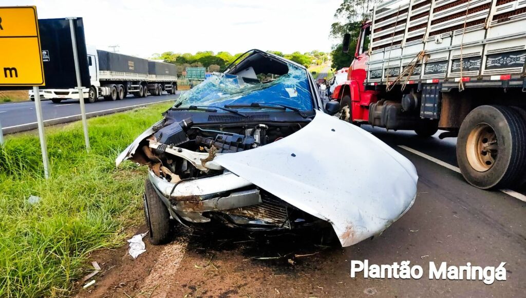 Carreta colide contra carro e arrasta veículo pela rodovia BR-376