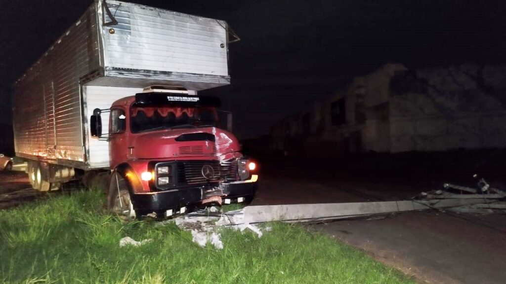 02/01/2023 às 22:01 Caminhão colide em poste e deixa região do parque de exposições sem energia elétrica