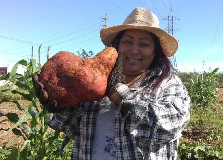 25/02/2023 às 14:00 Moradora de Umuarama colhe batata-doce de 6 kg em horta comunitária no bairro São Cristóvão