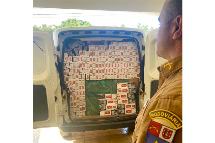 30/03/2022 às 11:21 PRE apreende veículo Fiorino com mais de 22 mil maços de cigarros na PR-180 em Goioerê
