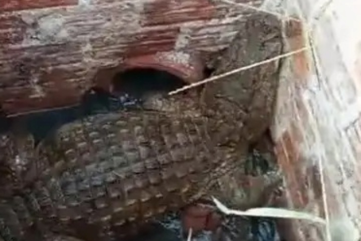 27/10/2023 às 14:23 Defesa Civil resgata jacaré de 1,60 metro que caiu em buraco na região de Maringá