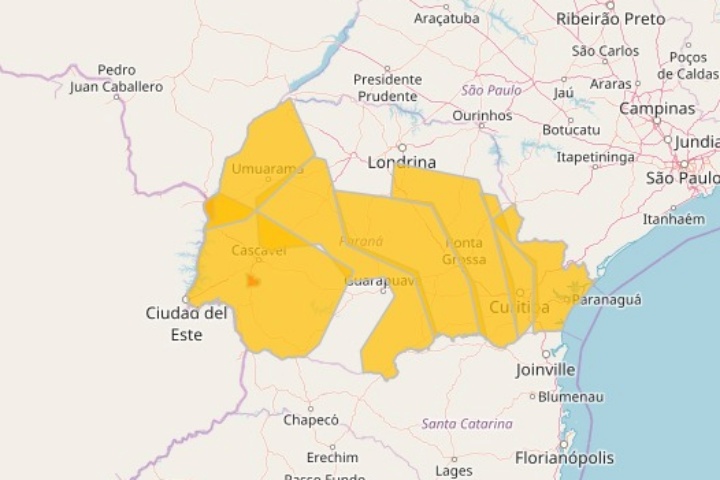 19/10/2023 às 12:15 Instituto Nacional de Meteorologia divulga alerta de tempestades para Umuarama e região