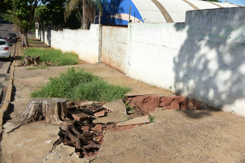 Moradora alerta para existência de buracos em calçada na rua Japurá, em Umuarama