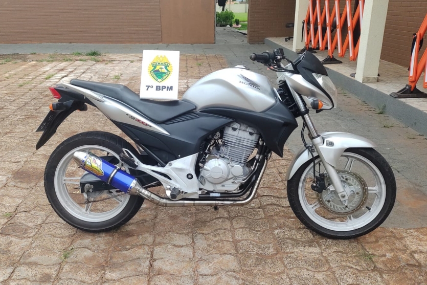 05/12/2024 às 09:28 PM recolhe motocicleta sem retrovisores e com escapamento barulhento de condutor sem CNH