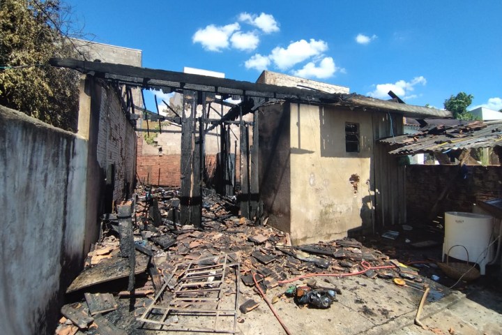 22/03/2023 às 14:13 Casa de madeira é totalmente destruída após incêndio na rua Porto Alegre, em Umuarama