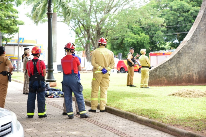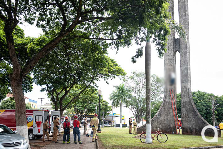 22/02/2023 às 16:00 Após negociação, homem que havia subido na torre da Catedral de Umuarama desce do local