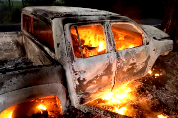 07/12/2021 às 12:42 Caminhonete é destruída pelo fogo após acidente na PR-468, entre Goioerê e Umuarama