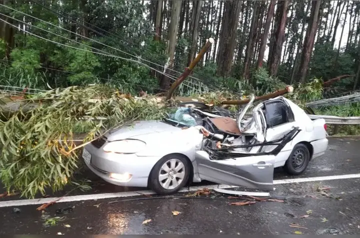 21/01/2024 às 17:13 Árvore cai sobre carro com placas de Umuarama na PR-444 e duas pessoas ficam feridas