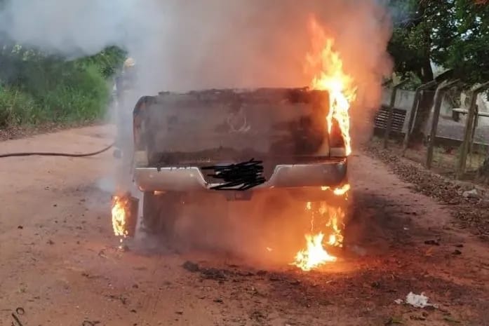 09/11/2023 às 08:08 Caminhonete incendiada próximo ao pátio da Prefeitura de Umuarama havia sido roubada na PR-482