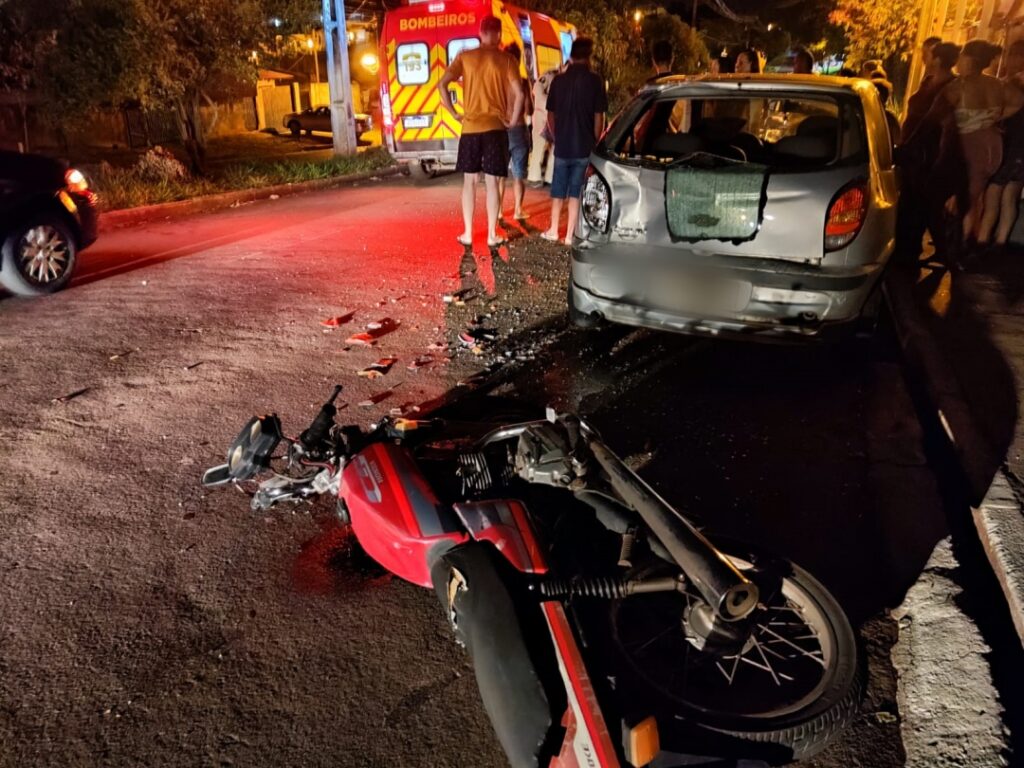 09/05/2023 às 21:48 Umuarama: Motociclista fica gravemente ferido após bater em carro estacionado na avenida Goiânia