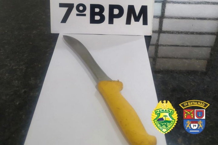 25/10/2023 às 13:59 Homem fica nervoso ao ver viatura e “entrega” que estava portando faca em via pública