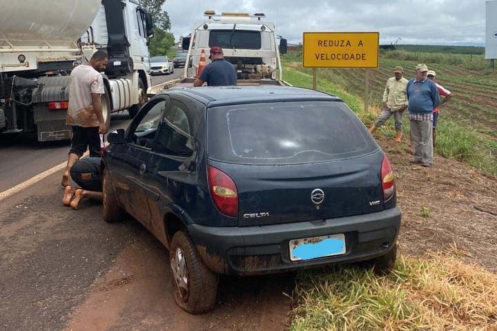 25/03/2022 às 18:52 Celta de Umuarama com três passageiros perde o controle e sai da pista na PRC-272
