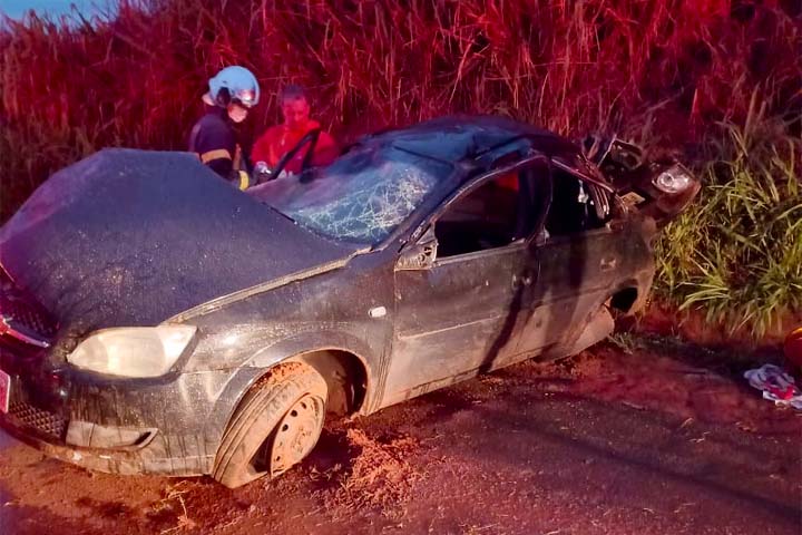 Três moradores de Douradina ficam feridos após capotamento na PR-492