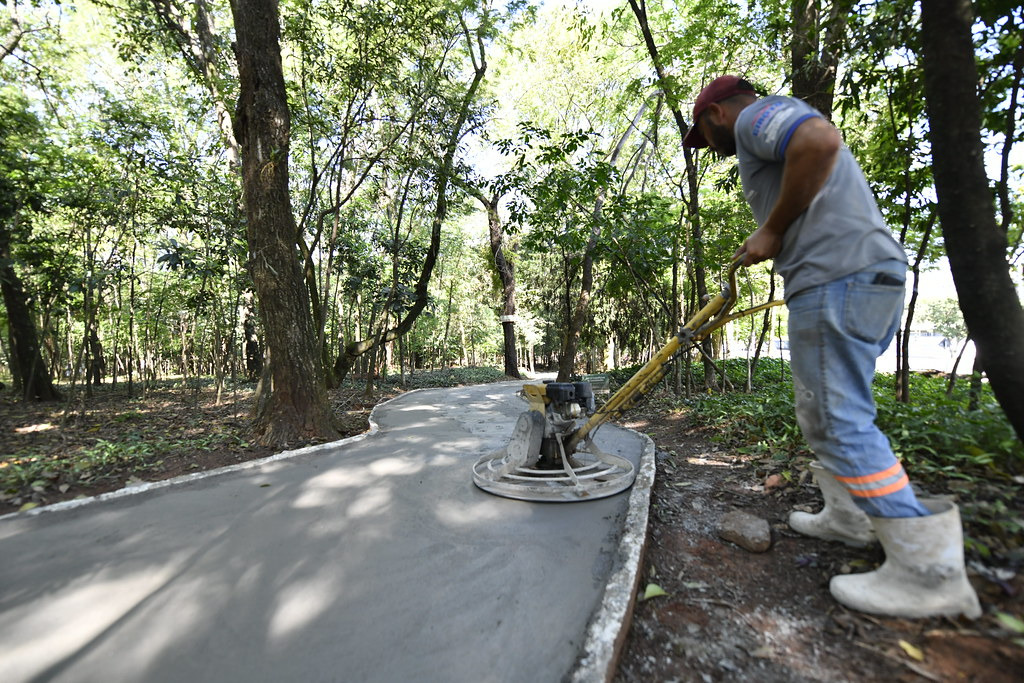 14/09/2023 às 07:00 Pista de caminhada do Bosque Uirapuru recebe recape e obra entra na fase de conclusão