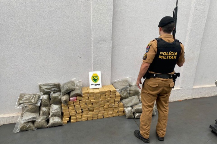 17/04/2024 às 08:01 PM apreende mais de 100 quilos de maconha em carro capotado na PR-082, em Nova Olímpia