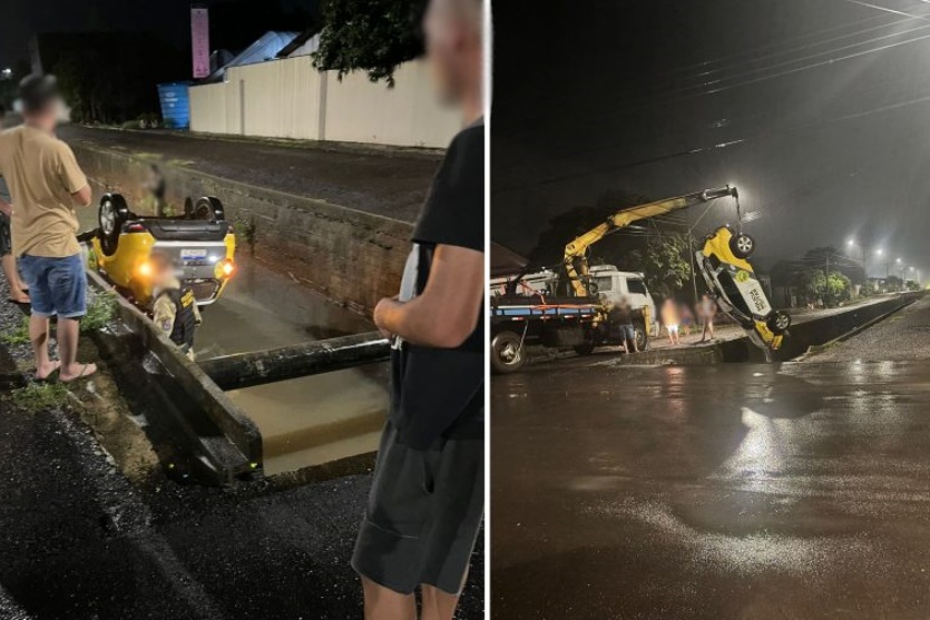 10/12/2024 às 12:34 Viatura da Polícia Militar capota e vai parar em córrego após perseguição a motociclista